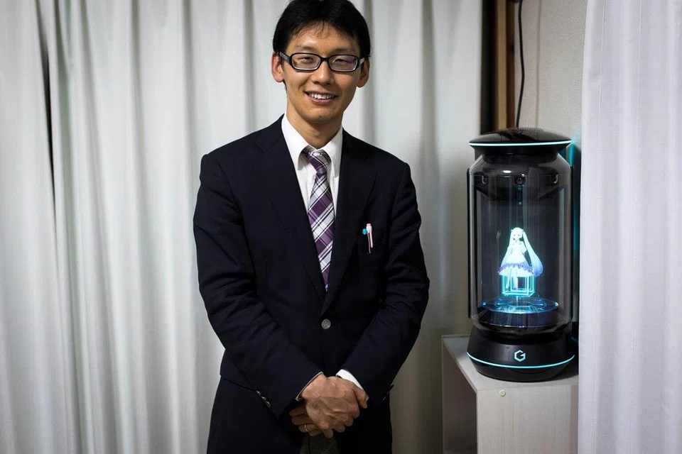 Since March, Kondo has been living with a moving, talking hologram of Miku that floats in a US$2,800 desktop device.