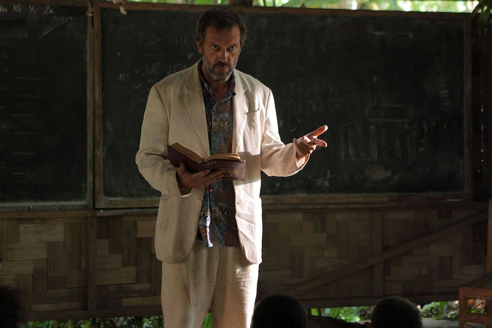The island's natural beauty has been overshadowed by political problems and the situation has escalated to a point where Tom Watts (Hugh Laurie) is the only white man left on Bougainville. He wears a cream linen suit and (sometimes) a red clown nose while caring for his native wife Grace, who is afflicted with a bad case of island fever. Watts has left another life (and the demons that accompanied it) behind in England but now he feels obliged to engage and educate the children of Bougainville.
