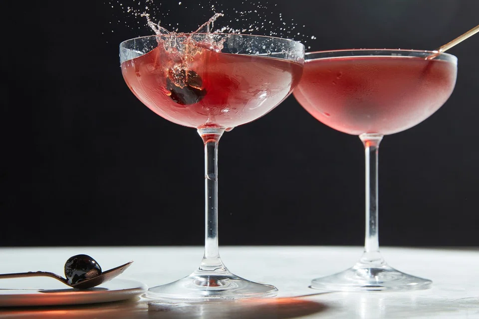 With a rye-bourbon split and just enough slightly herbal creme de cassis to sweeten without overpowering, this Manhattan variation is spirit-forward, with layered notes of sugar and spice. If you prefer to keep the drink to one type of whiskey, opt for rye and leave out the bourbon. Whatever you do, let the cherry garnish sit until the very end of the drink for an especially flavourful final snack.