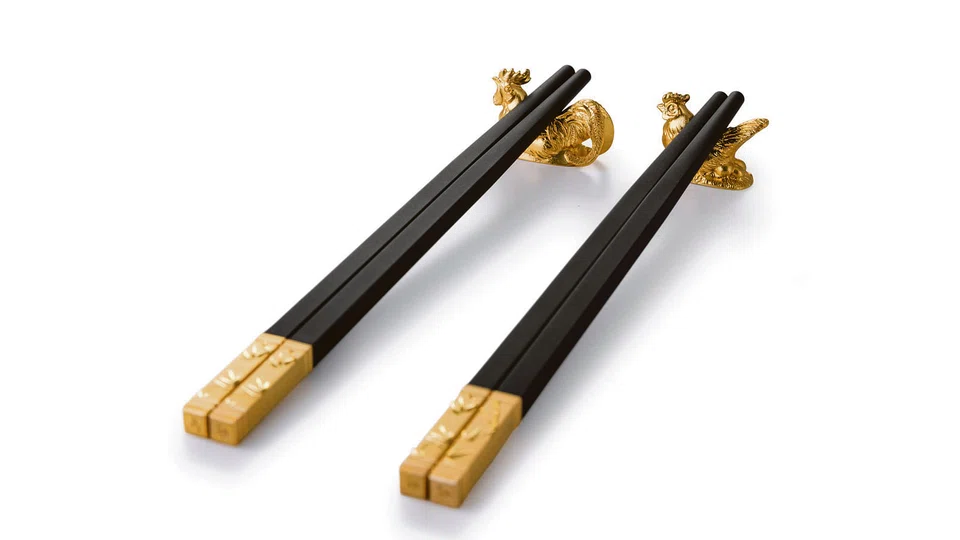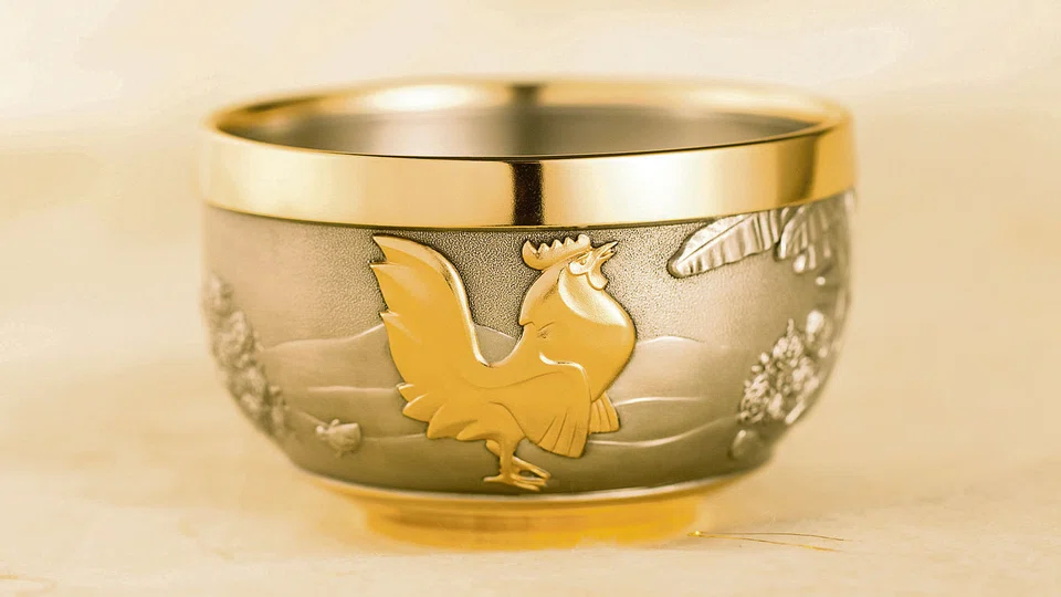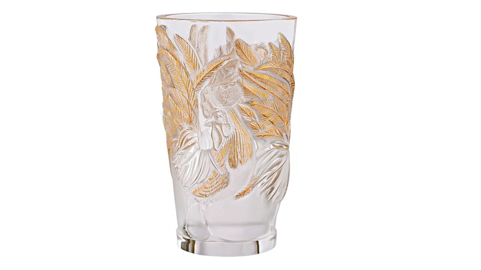 A few stalks of pussy willow or plum blossoms will add a festive touch, especially in this gold stamped vase with a rooster engraved on it. There are only 888 pieces worldwide.