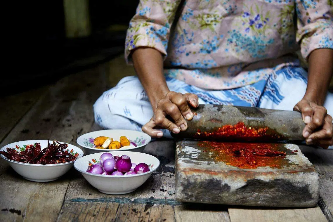 Above all, "Mum taught me about sincerity in preparing food, and especially patience." Particularly when making sambal, which needs to be "slowly cooked over low fire, and reduced until the whole kitchen is filled with a wonderful aroma".