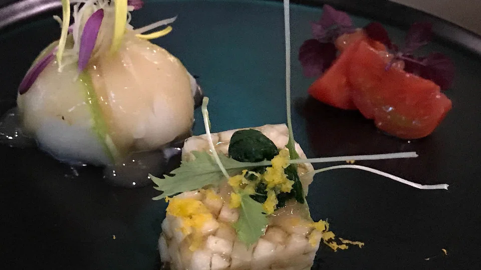 Apart from a refreshing sweet fruit tomato with plum sauce, a jellied terrine of local turnip has more acidity than taste, while a promising scallop-tofu ball wrapped in a layer of braised winter melon is thankfully warm but thanklessly pallid.