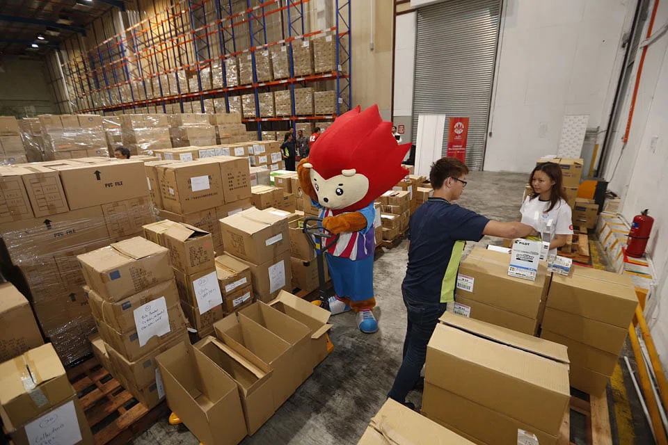 INSIDE a massive facility in an industrial estate south of the Pandan Reservoir sit all the supplies needed for the upcoming South East Asian or SEA Games, the mega sporting event Singapore is hosting in June.