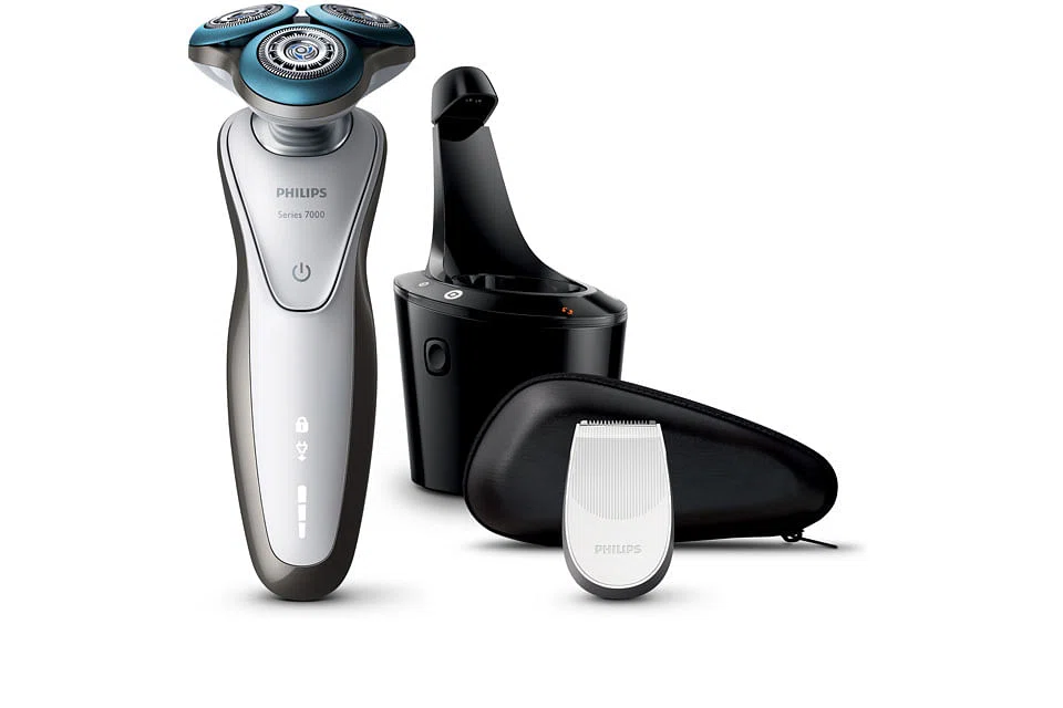 The shaver has a wet and dry feature which allows users to get a dry shave in seconds, or have a more precise one while taking a shower. The shaver also works with shaving gel, for a smoother groom in the morning. The S7710 comes with a precision trimmer for sideburns, as well as a SmartClean system that cleans, charges and lubricates the shaver at the same time.