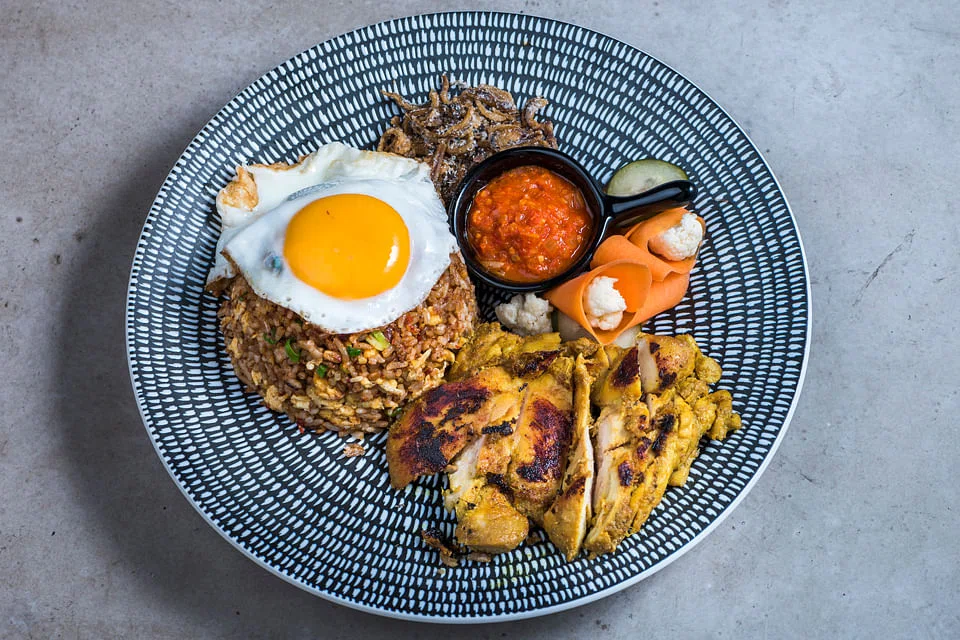 The satay also makes a repeat appearance in the kampong fried rice (S$16) - a mound of fried multi-grain rice that tastes like a happy fusion of fried glutinous rice and conventional nasi goreng. It's topped with a fried egg, crunchy fried ikan bilis and sambal belacan.