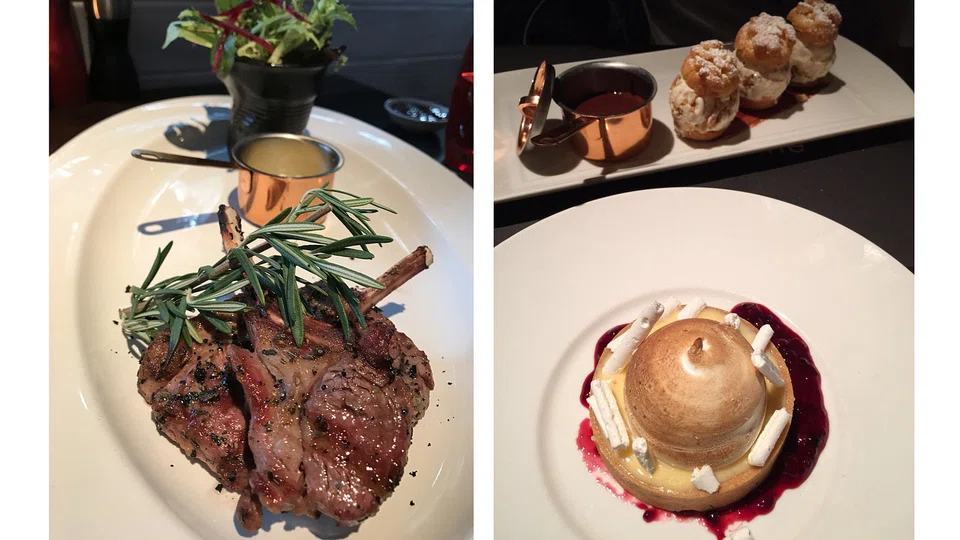 For dessert, she suggests the profiteroles (S$13) which are thankfully not the hard and dry variety - the three generous puffs are tender and filled with homemade pecan ice cream. Warm chocolate sauce is drizzled over. The pastry could be fluffier and the ice cream stronger in flavour, but is still pleasant enough.