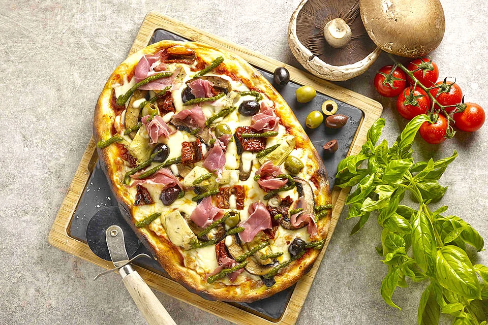 The plush Rigatoni Prawn is served with a generous amount of fresh sea prawns that are tossed with rigatoni and roasted capsicums in a rich-tempered tomato parmesan sauce. It combines the tangy flavours of a rich sauce, accompanied with al dente pasta and crunchy prawns. A "vegetarian alternative" version of this dish is made available upon request.