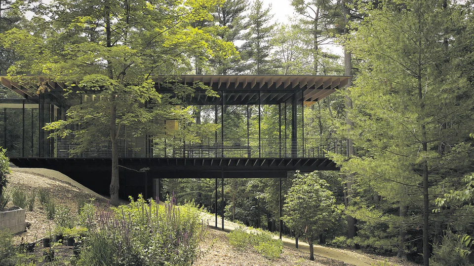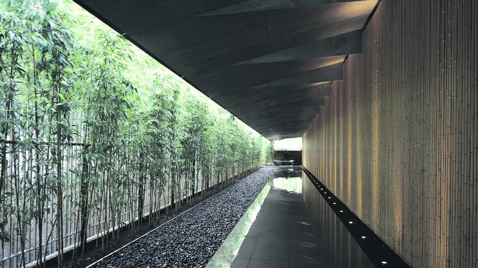 With five buildings in town - including the Kumo-no-Ue-no hotel (1996), Town Hall (2006) and cantilevered Wooden Bridge Museum (2010) - Yusuhara (pop. 3,600) serves as a mini architectural showcase for Mr Kuma. His design aesthetic and stated goal of being in tune with the environment has also energised the small coastal town of Atami in Shizuoka Prefecture, where Water/Glass (1995), a private guest house, is an attempt to connect architecture with the sea through an engawa, or in-between space, of a reflecting pool. Atami, incidentally is also where that early commission - a tiny bathhouse - was built in 1988.The engawa for the Nezu Museum (2009), in Tokyo's fashionable Omotesando neighbourhood, is a long, open-air, bamboolined passageway between the road and the main building of the private art museum.