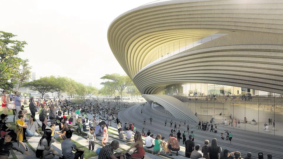 The Founders' Memorial concept, comprising a 'path' that traces the legacy of Singapore's founding fathers in a lush 5ha. space overlooking Marina Bay, is imagined as soothing and inspirational -organic forms and spaces that blend seamlessly with their garden environment. "Water is an important element, as a backdrop for reflection and contemplation," says Mr Kuma. "Rather than a building object, we hope to create a garden that complements the bay and the city skyline." The project, with Singapore firm K2LD Architects as local partner, is slated for completion in 2027."Architecture is about a conversation with the material," says Mr Kuma. "For each project, we carefully choose the materials that fit the total environment and place. It is not just about the physical environment, but also coming from the history of the place." He adds, "Our primary consideration is how to design with the environment in its totality, so this starts with the material. It is materials that imbue a connection to the ground, the greenery on the roof slopes and earth for the paths, thereby creating a new kind of monumentality."