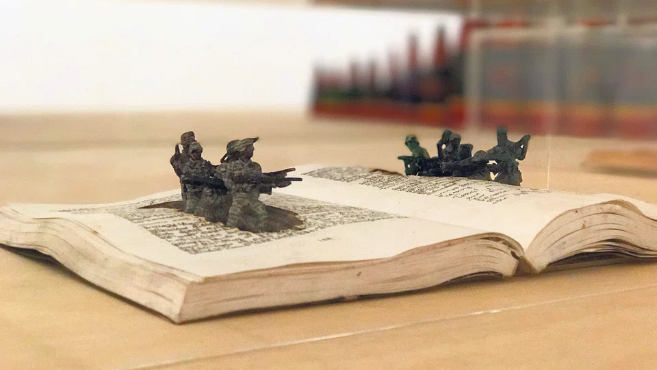 Responding to this, Thai artist Jakkai Siributr created several imaginary flags out of weaving detritus found on beaches where Rohingya refugees fled from or arrived on. These poignant tapestries are hung from the ceiling to question notions of homes, borders and nationalities, and remind us how these things we identify with also divide us.