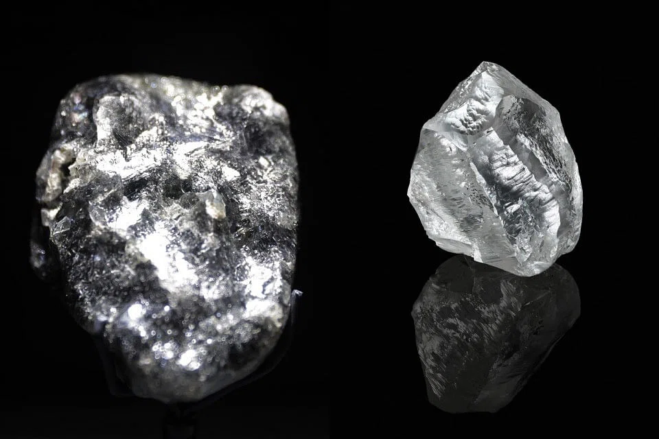 The former is a crystal-clear stone of exceptional lustre and clarity, while the latter is a rough diamond coated with a thin layer of carbon. Both were discovered at Lucara's Karowe diamond mine in Botswana in recent times.