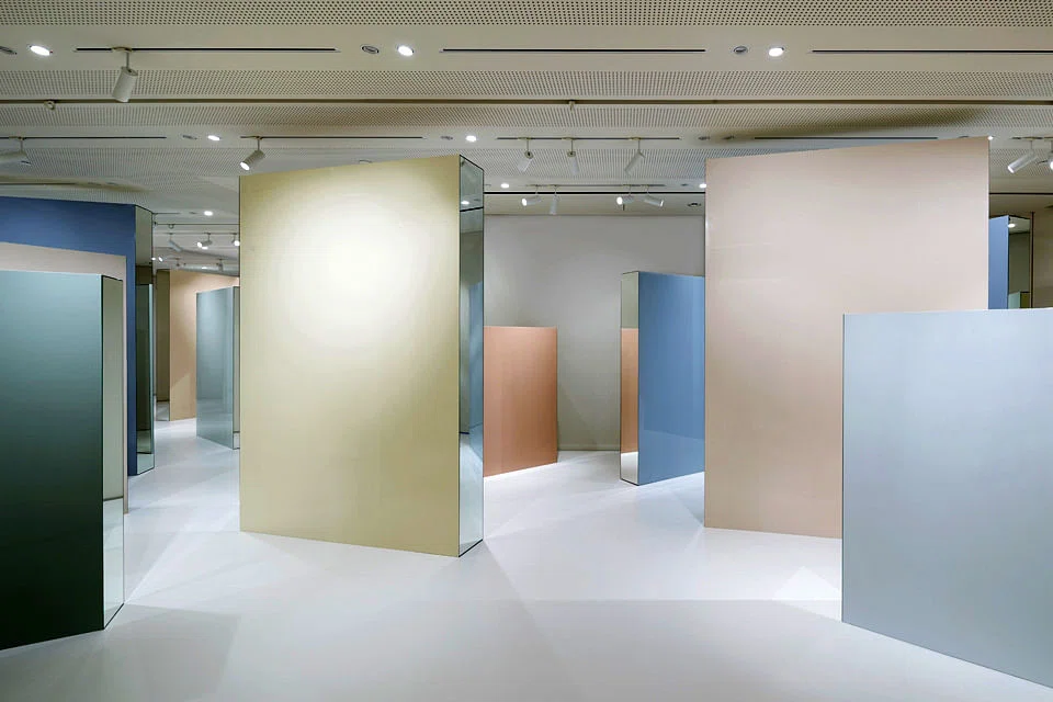Ng has translated her concept beautifully into a brick-and-mortar (or, should we say, metal-and-mirror?) installation which evokes this state of consciousness. She was also inspired by Yves Klein, expanding on his belief that colours are portals with the vertiginous quality of transporting the viewer from one realm to another.