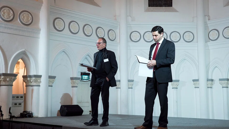 In Singapore, Mr Evans and John Bell, the founder of the Bell Shakespeare company, both went on stage to read the selected lines, and then explained how they reflected the different leaders in the play.