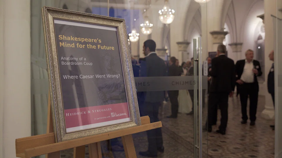 For this Shakespeare and leadership version in Singapore, held earlier this week, "Where Caesar Went Wrong: Anatomy of a Boardroom Coup" uses five leadership examples in Julius Caesar the play. The dinner event at Chijmes Hall was attended by some 60 top executives in Singapore.