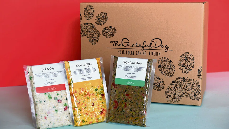 One new service is The Grateful Dog - an AVA-certified kitchen recently launched by two local dog-lovers. They offer three different subscription packages with options like beef and sweet potato, chicken and millet, or pork and oats. The meals are individually vacuum-sealed and flash-frozen, so their customers just need to thaw each pack before feeding. Prices vary depending on the options you select, as well as your dog's weight.