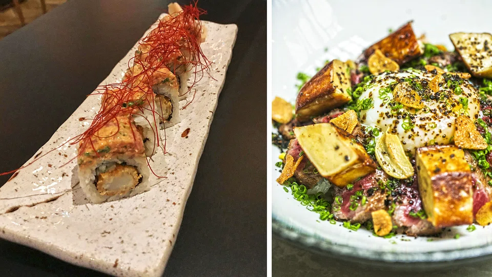 We much prefer simpler one-bowl rice dishes over elaborate makis that are invariably smeared with mayonnaise or mentaiko cream. But the spicy ebi tempura and negitoro maki (S$24) keeps things in balance with a neatly organised roll of crispy shrimp encased in rice and nori, topped with finely chopped tuna mixed with spicy mayonnaise.