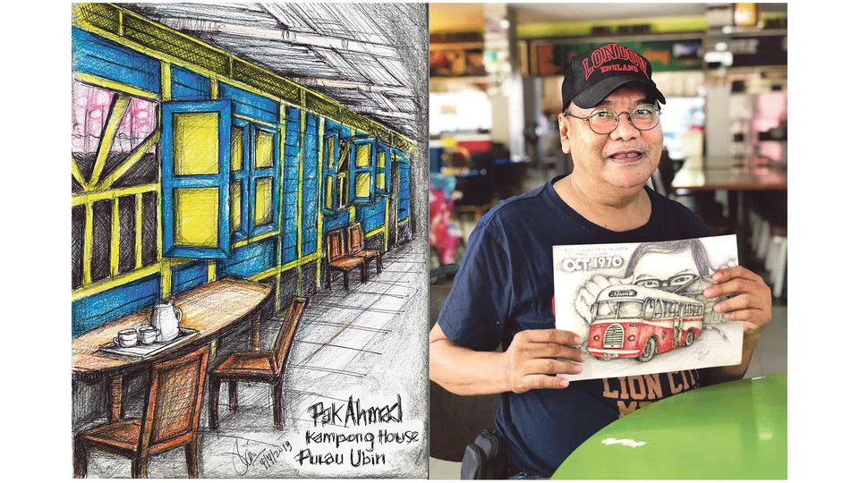 "Those items were expensive back then," Mr Hassan recalls. He would spend his time sketching his daily life. "I had no formal training, but I believe I had a gift for drawing," says the father of one.