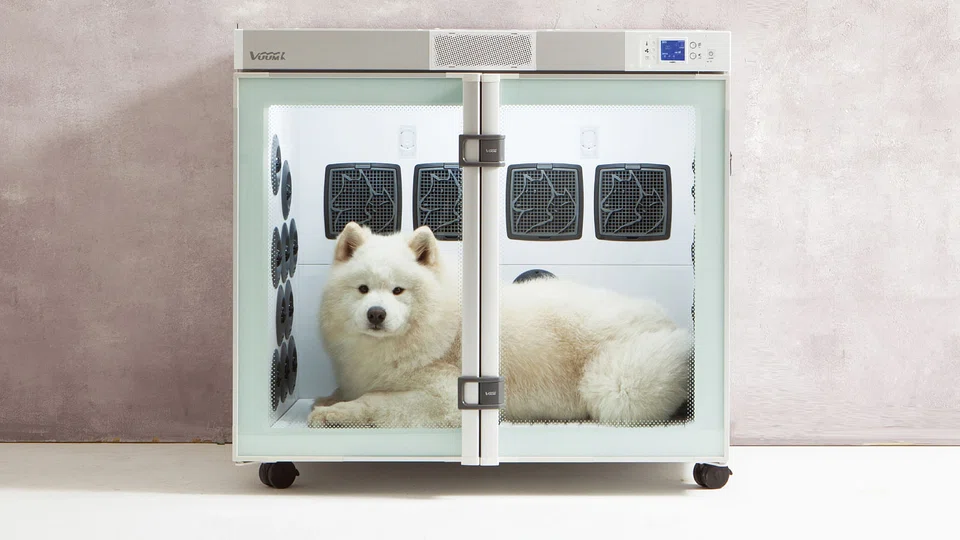 "The boss's family in Korea has dogs as well, and their company uses airflow technology so they thought of applying it to drying pets," explains Mr Chong. "I have three dogs myself, and when I walk them, they get dust and dirt on their feet and fur. So after a walk, I put them in the Vuum for 20 minutes so that they're cleaner when they run around the house."