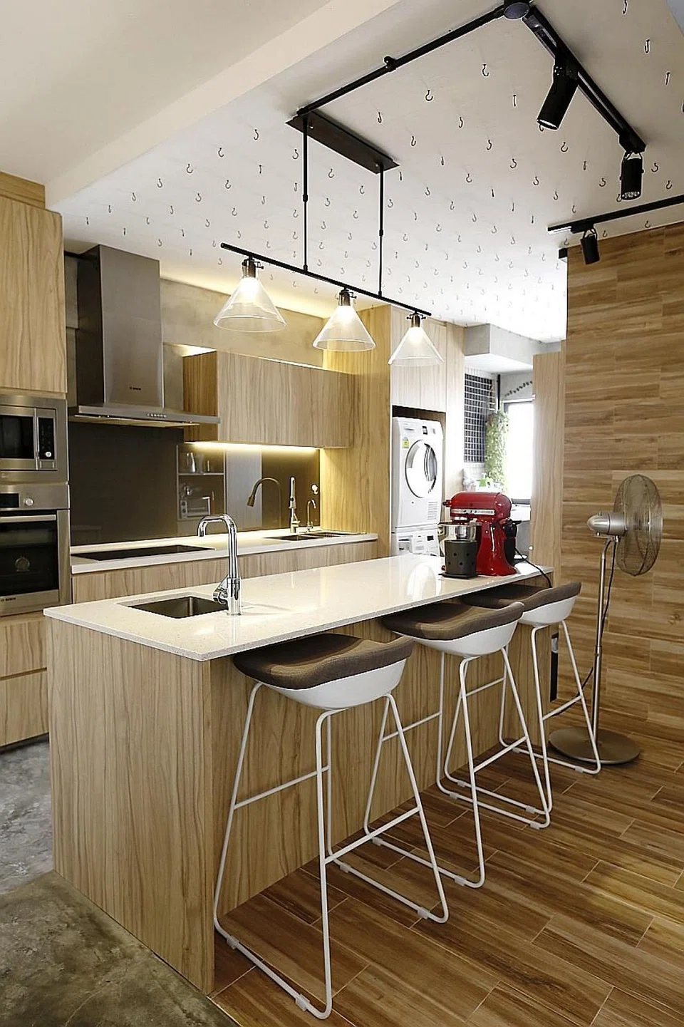 The chandelier is a tentacle-esque construction that hangs from the ceiling of the stairwell in the apartment of Thong Chew Fatt, 33 and his wife Eileen See, 32. Describing the light fixture, Mr Thong likens it to a "living organism" that can extend into most corners of the 1,700 square foot apartment by way of free floating pendant lights that can be anchored to any of the 700 hooks affixed to the ceiling for task or accent lighting. Because they are not fixed permanently, the pendant lights can always return to the main chandelier cluster in the stairwell or as Mr Thong likes to call it, "the Mothership".