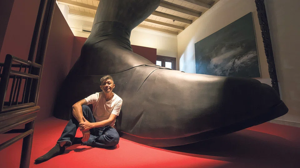 WALK INTO ONE GORGEOUS Emerald Hill conservation house and you'll find yourself confronted by a black giant boot. It towers over you like a menacing tree trunk and when you touch it - yes, this is one artwork you're allowed to touch - something magical happens: your fingers turn the surfaces they touch into gold.