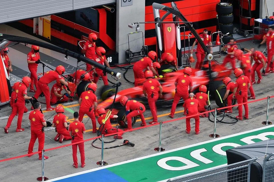 F1's masked men keep their distance