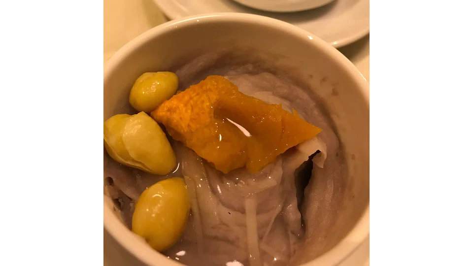 Famous Treasure also does a satisfying orh nee (S$8) - traditional sweetened yam paste with gingko and pumpkin. Little bits of water chestnut add an extra crunch. Glutinous rice flour balls stuffed with black sesame in ginger syrup (S$8) is ordinary, but still a comfy sweet end to the meal.