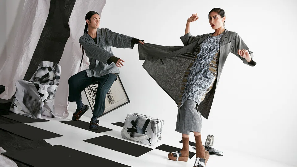 Besides that, Ng also favours asymmetry and genderneutral designs: "We have menswear and womenswear, but a lot of the shapes are gender neutral. So, for example, the jackets and pants can pretty much be worn by both sexes. And they're also trans-seasonal, meaning they can be worn for years to come."