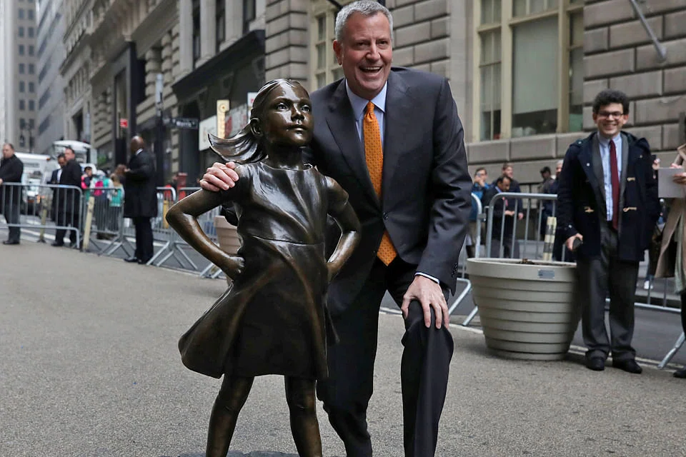 Fearless Girl was created by the sculptor Kristen Visbal and erected in Bowling Green, a small park, by the financial firm State Street Global Advisors in honour of International Women's Day in March.