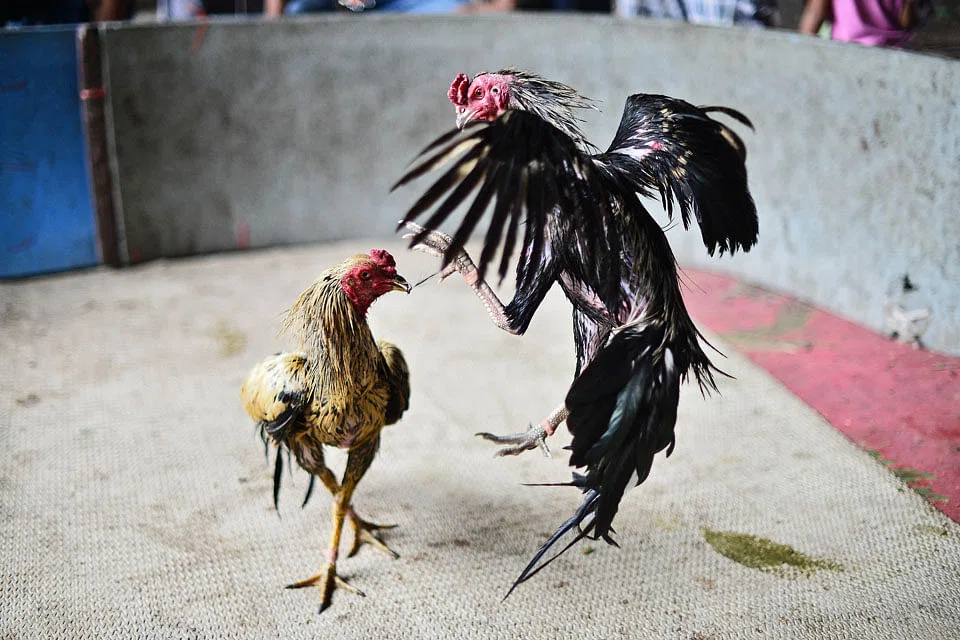 The birds do not usually fight to the death, as in many parts of the world, but they can still inflict fatal damage to their opponents in contests almost always accompanied by lucrative gambling.