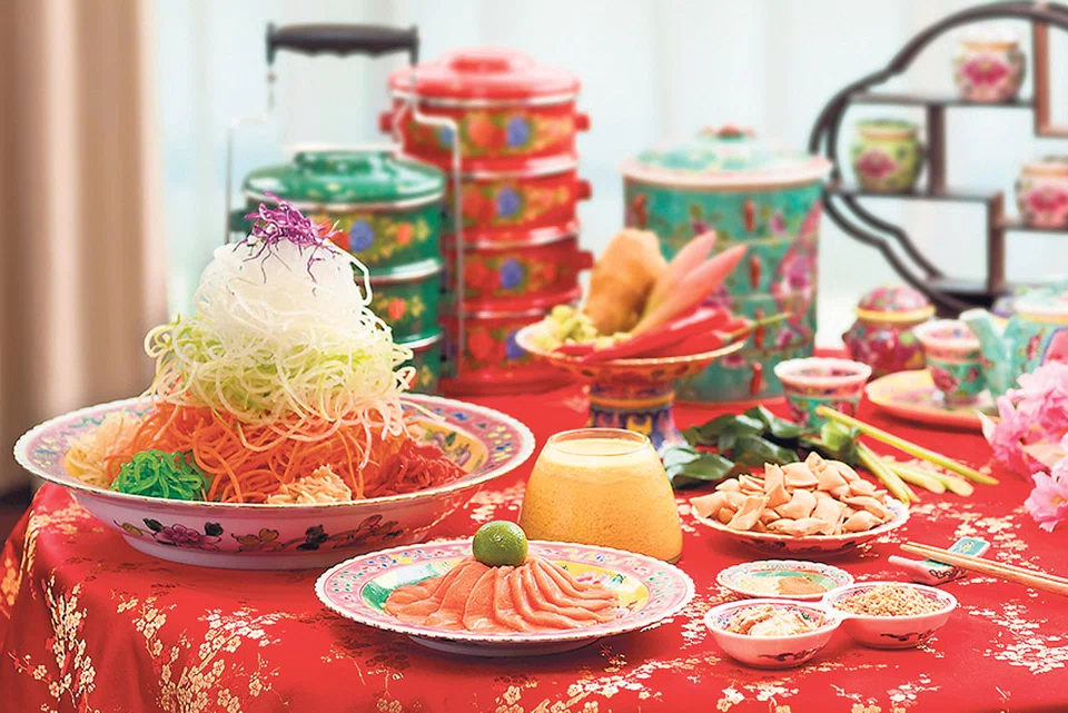Let The Fullerton Hotel and The Fullerton Bay Hotel get your Chinese New Year off to an auspicious start. This year's highlights by Chinese Executive Chef Leong Chee Yeng of Jade restaurant include cute pineapple tarts shaped like bull terriers, Poached Yellow Capsicum, Mushroom and Pork Dumplings and Eight Treasures Pen Cai with 18 premium ingredients. Chef Siddharth Prabhu, who recently joined as Executive Pastry Chef, debuts a series of cakes at the Fullerton Cake Boutique including the Sugee Pineapple and Coconut Cake (S$68 per kg). At The Clifford Pier, heritage cuisine is reinterpreted for the reunion dinner on Feb 15 with a full buffet featuring Longevity Noodles and a giant Yusheng.