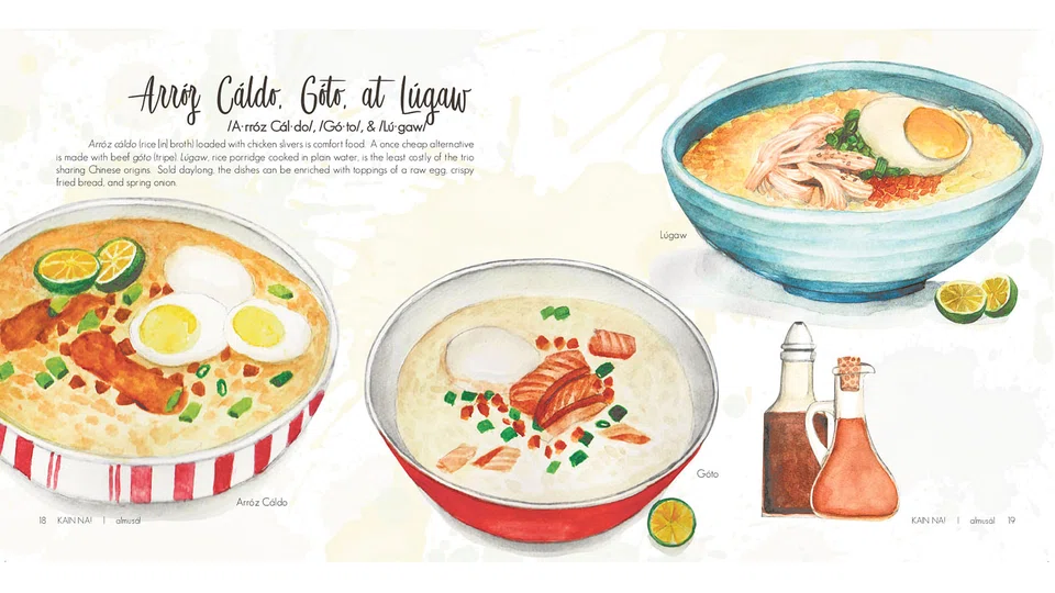 But for a deeper insight to Filipino food and culture, get a copy of the new illustrated book Kain Na! (Let's Eat): An Illustrated Guide to Philippine Food. It's written by food historian Felice Prudente Santa Maria and Singaporean food and travel writer Bryan Koh - who is also the co-owner of cake companies Chalk Farm and Milk Moons.
