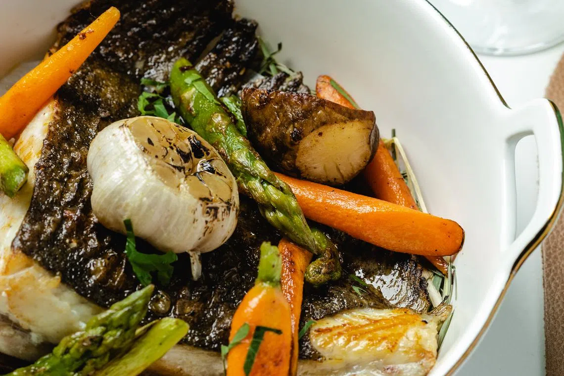 Finally, Poisson’s messaging kicks in with the likes of Maximus (S$75) - yes, another recommended house special - a hearty roasted side of French turbot served in its natural state, with simple roasted carrots, asparagus and Jerusalem artichokes. A whole bulb of roasted garlic finishes off this wholesome, satisfying tribute to the restaurant’s name. Thick and meaty in parts with gelatinous bony bits, there are no distractions to enjoying seafood in its natural state. We don’t even mind the same grey shrimp that give a briny boost to the beurre blanc sauce. Another olive oil dip works just as well.