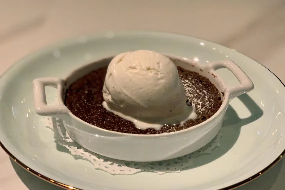 For dessert, there’s Choco De Coco (S$15) which is a bit like chocolate lava cake without the lava, baked in a flan dish with a scoop of vanilla ice cream. It’s nice and warm, with a grainy texture with more sweetness than depth, but an easy-pleaser.