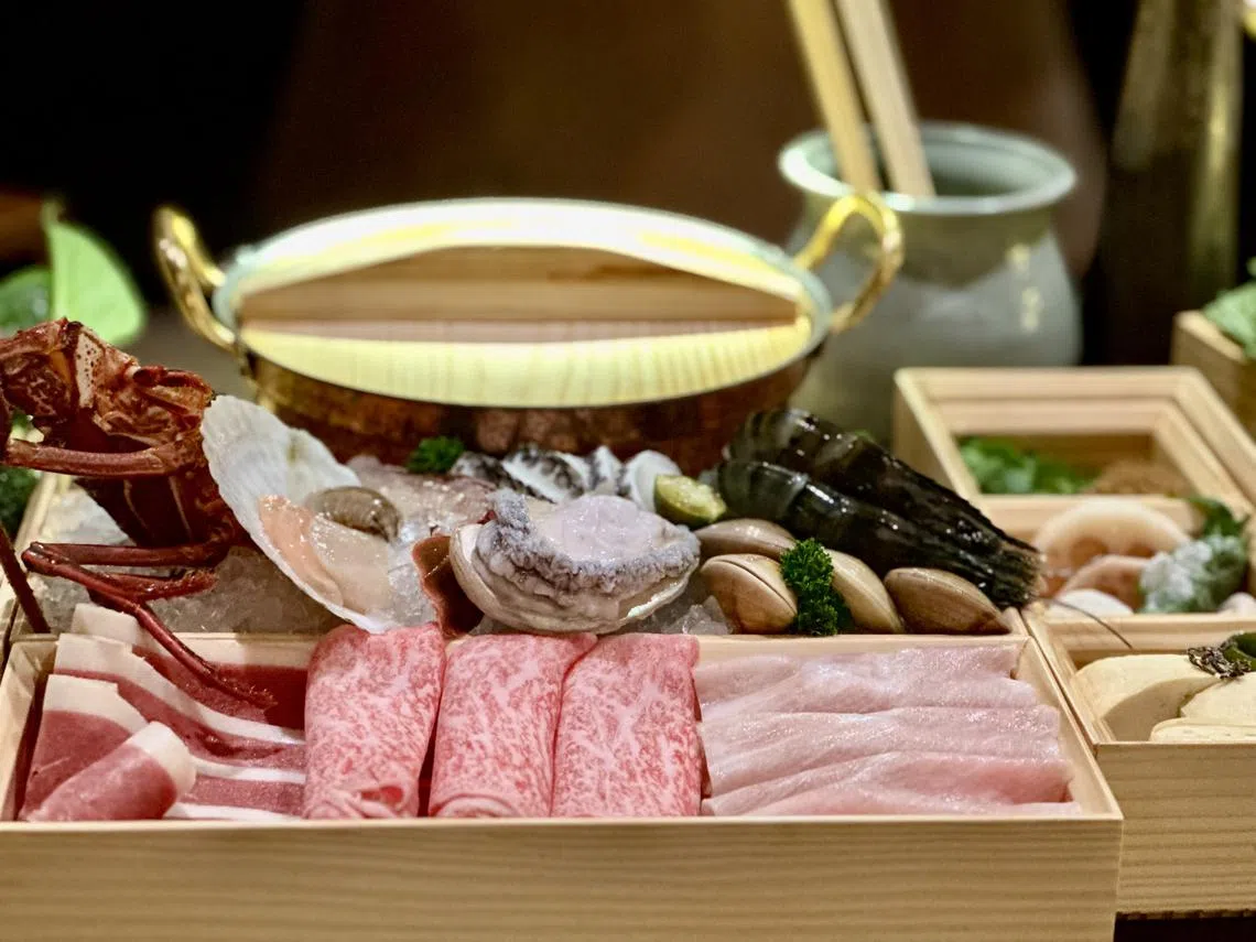 Still, eating here feels like a mukbang session. There’s an a la carte menu, but everyone seems to go for the sets: deluxe at S$110 and premium at S$138. For an extra S$28 you get fresh rock lobster and abalone over mussels and squid, and better quality meat cuts, which feels like a better deal. Either way, expect a mountain of ingredients including vegetables and tofu that – depending on your world view – is bang for your buck or an unnecessary waste.