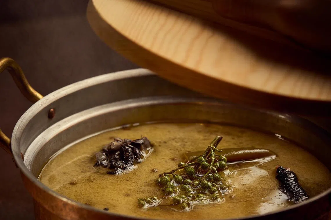 Chiang’s signature broth – Sichuan green pepper – isn’t his signature for nothing. It fares the best with a balance of depth, acidity and numbing heat that takes you through the whole meal.