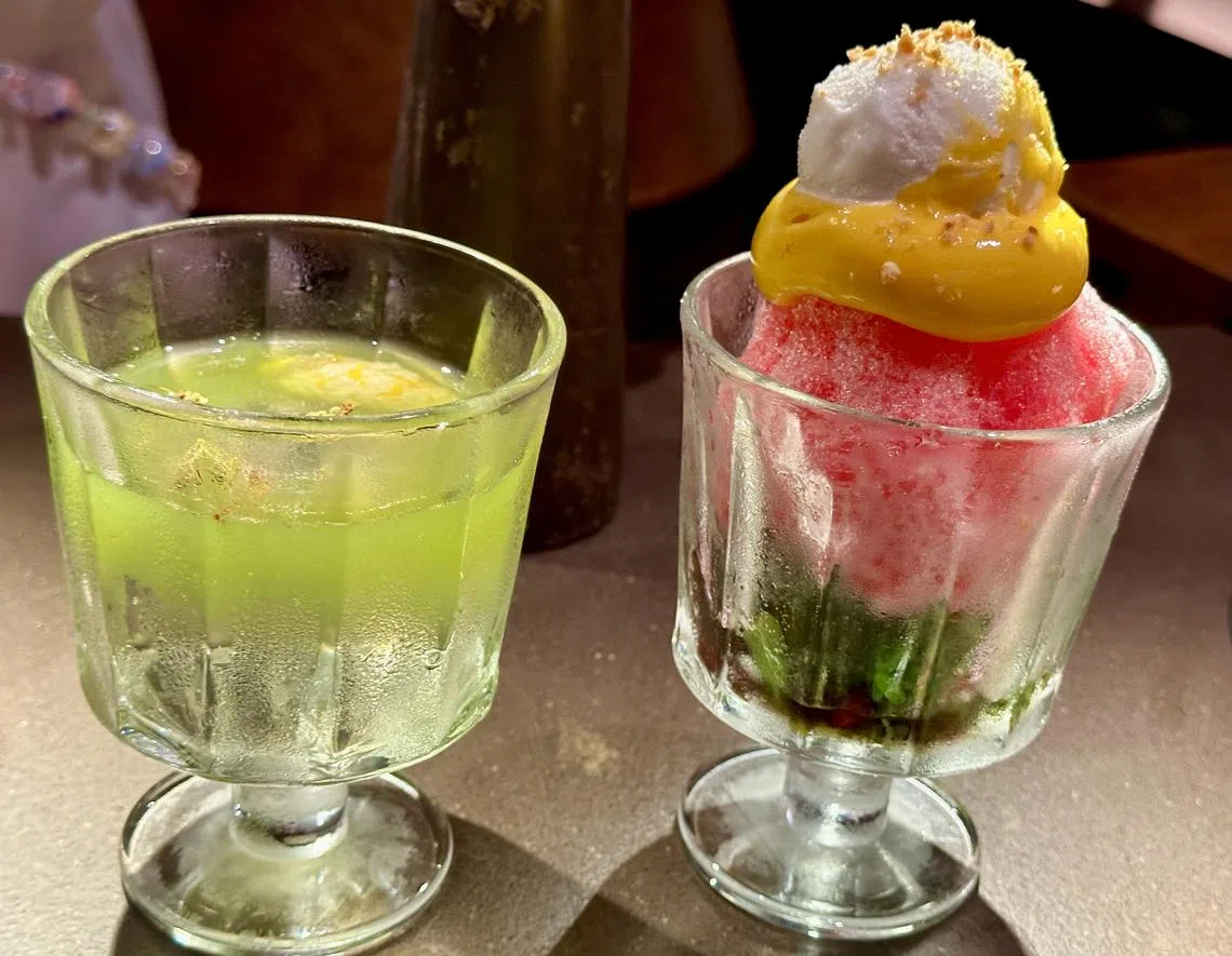Dessert isn’t included but you can get a very decent ABC ice kacang (S$12) – almost the real McCoy that gets its milkiness from ice cream, with mango mousse for a twist. Sichuan ice jelly (S$12) cools you down with clear jelly in melon juice topped with a smidgen of rice wine lees and grated citrus peel.
