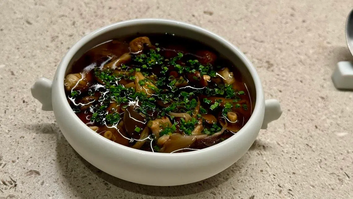 But a new address in an S$80 million Teochew landmark comes with high expectations. You realise this after puffing up a flight of sturdy timber stairs that could double as an ECG stress test (old house, no lifts). The entire second floor is designed as an interior design showcase in Japandi-style – warm-lit lounge contrasting blond and dark woods and muted hues. There’s a matching bar, and private rooms too. You’re led to the dining room itself – divided between tables and a counter where Kubota holds court like a silent maestro waiting for the orchestra to settle.