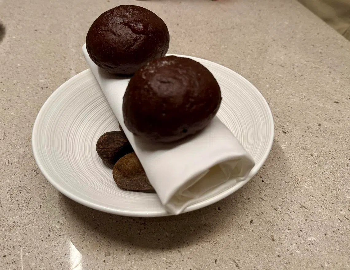Pan-fried isaki or grunt fish wins for sheer skill – thanks to its firm flesh and impossibly crackling skin. The laksa-ish beurre blanc that it comes with works, but is a little cliched. Fluffy, earthy buah keluak bread is better on its own with butter, rather than the distracting “nonya” sauce.