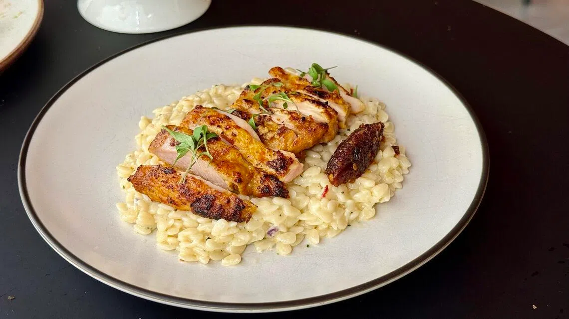 They’re out of the “hua diao” clam linguini that we wanted, but it’s not a major sacrifice to settle for the chicken thigh nasi lemak risoni (S$19.80), aka what happens when you give an Italian chef a recipe for sambal but withhold instructions for the rice. Thoughts of “why not just make a proper nasi lemak instead?” linger as you do a note-by-note comparison: creamy risoni pasta that’s good enough on its own even without the accompanying “hae bee hiam” sambal; and a well-grilled flattened turmeric-spiced chicken thigh instead of the usual deep-fried leg.