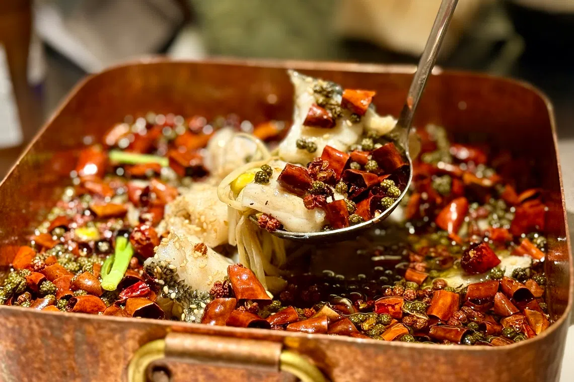 We’re also drawn to the fiery redness of boiled fish and pig intestines in chilli oil (S$108) despite the hefty price tag. Again, it turns out pretty tame despite the onslaught of dried chilli and peppercorns – the sliced fish has a pleasant slippery silkiness and the intestines an intriguing, if gamey, addition.