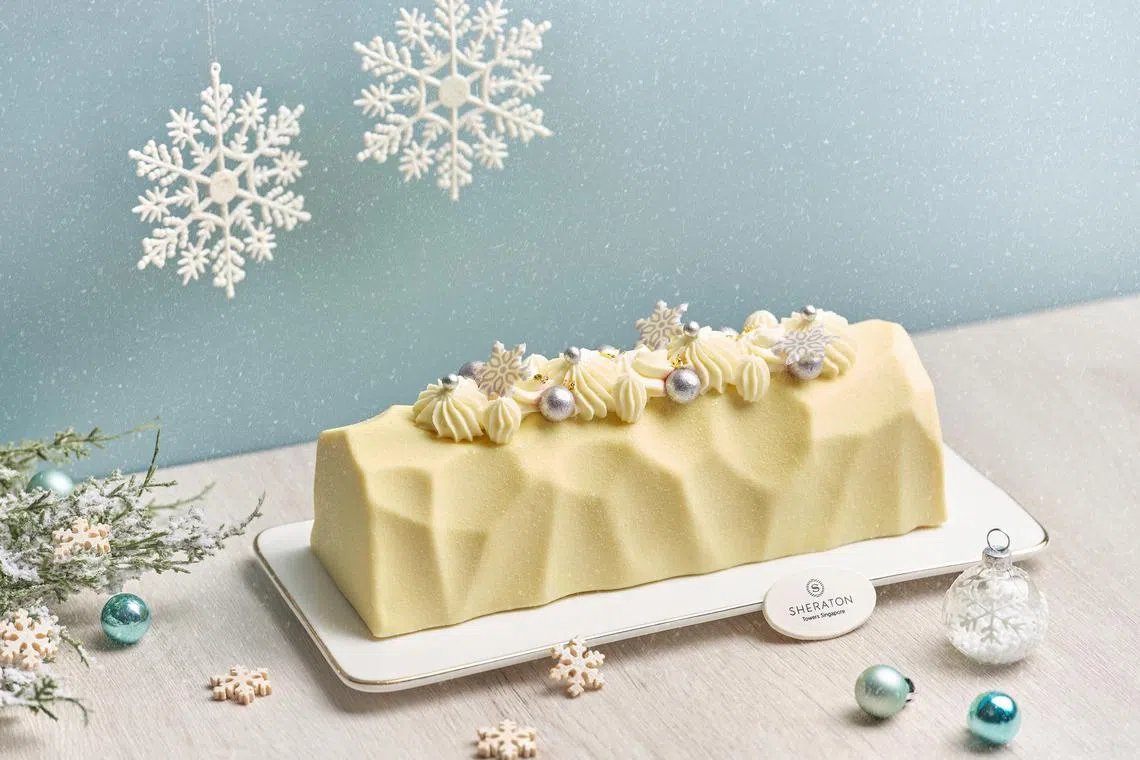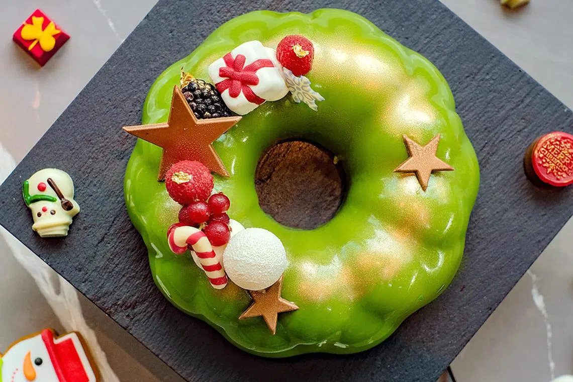 For those with a sweet tooth, there’s an array of yule logs and cakes such as an intense dark chocolate yule log (S$88) and the intriguingly named Pandora Box cake (S$98), which features a fusion of hojicha mousse, sour cherry confit and pistachio feuilletine.