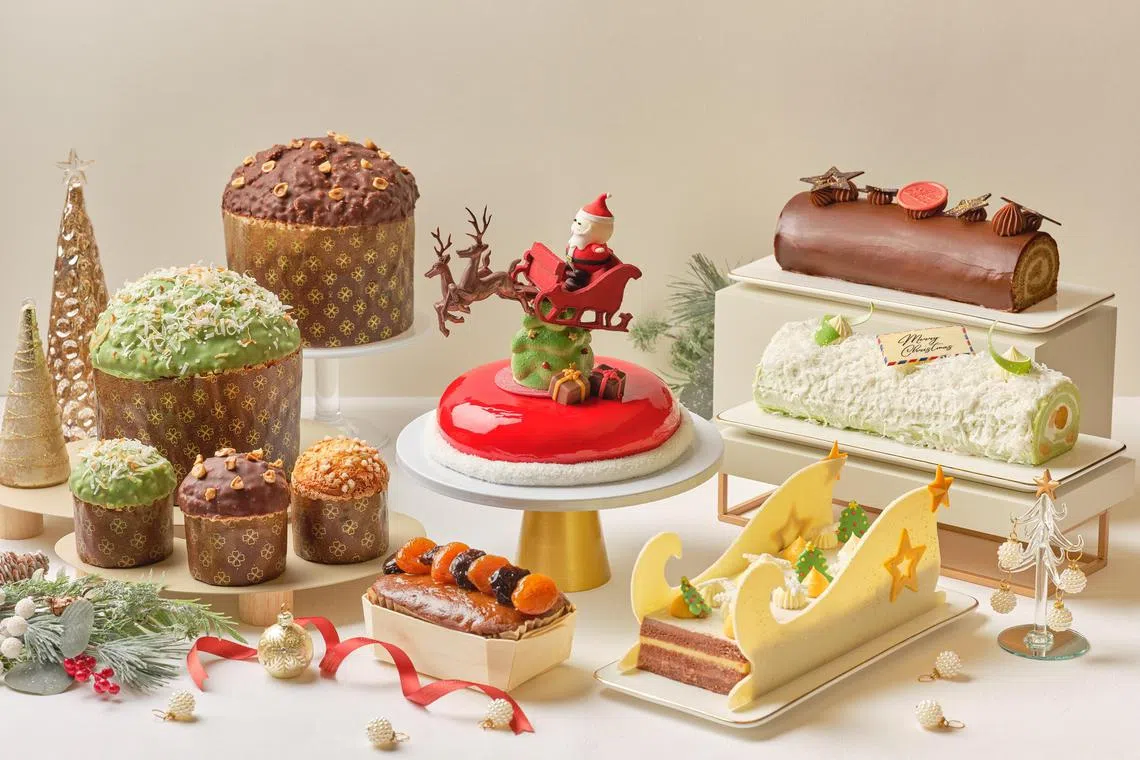 For panettone lovers, there’s a new pandan kaya version (S$68 net) in addition to the classic and Nutella flavours. The calamansi chocolate caramel (S$88 net) and yuenyeung (S$79 net) yule logs are also new, along with signature favourites like the Black Forest yule log (S$88 net). And for the ultimate gift, the new Christmas “Wanders” gift hamper (S$328 net) features a reusable suitcase filled with champagne or red wine and other goodies.
