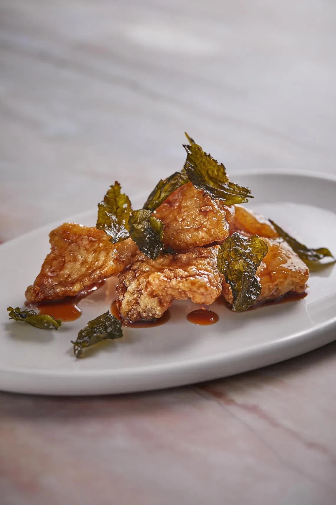 Deep-fried cod fillet in Yangzhou style (S$28) is less predictable than its fried rice compatriot, as you get the yin-yang effect of crunchy-soft fish coated in a thick sweet-sour glaze that’s perky without being cloying.