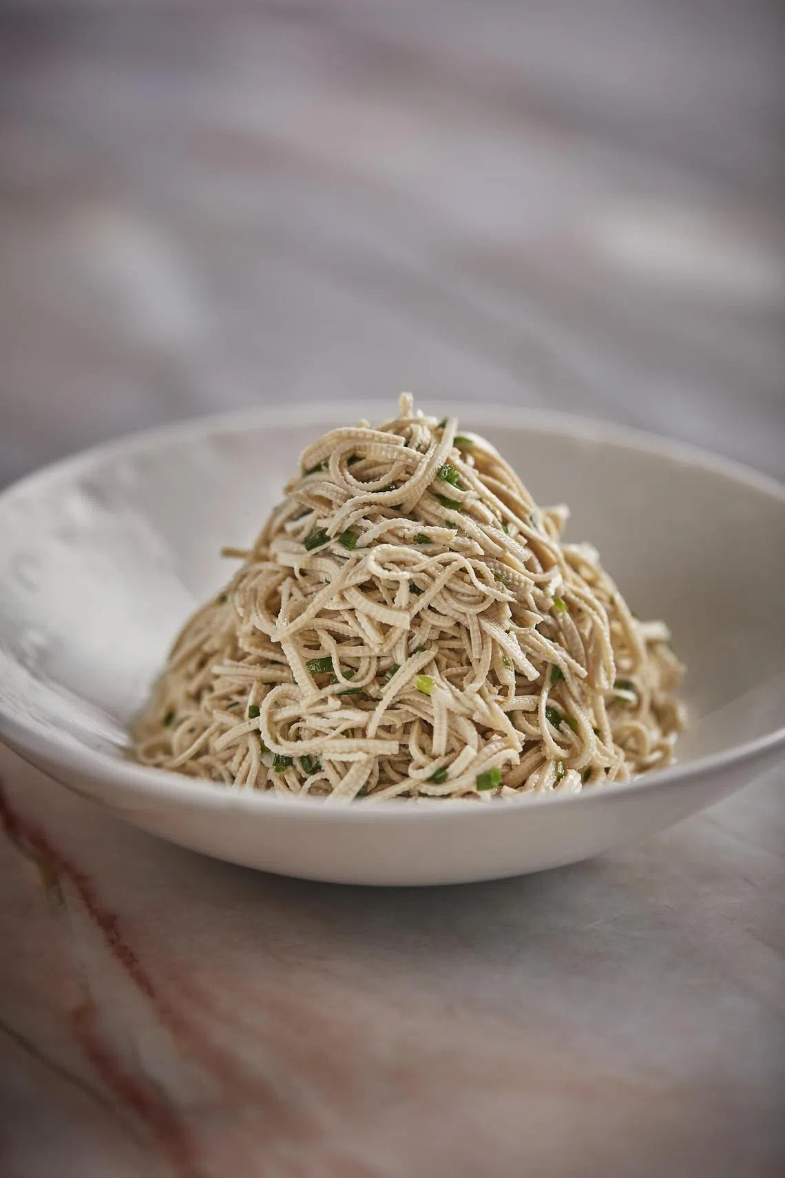 That said, the first to make an impression is also the simplest. At least deceptively so, because we don’t know how many fingers were harmed in the process of training chefs to prepare shredded tofu Jiangsu-style (S$18). A mountain of long, thin and springy strips of firm tofu are tossed in a savoury sesame oil dressing and served cold as an addictive snack.