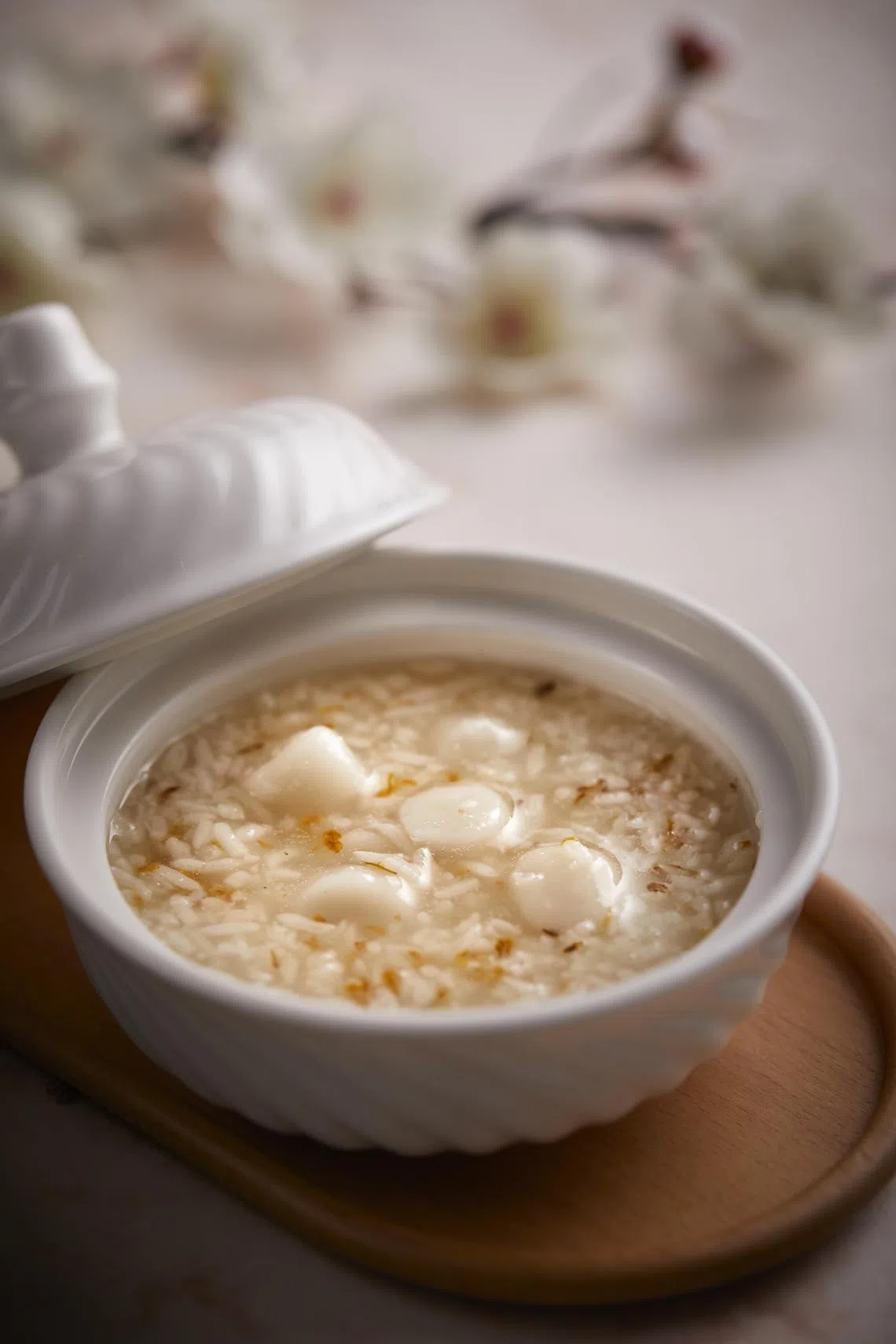 Fried egg white souffle ball filled with red bean paste and banana (S$7.50) is familiar but well-executed. More interesting is a bowl of sweet fermented rice soup (S$8) with a hint of booziness from the lees, and tiny glutinous rice balls to chew on.