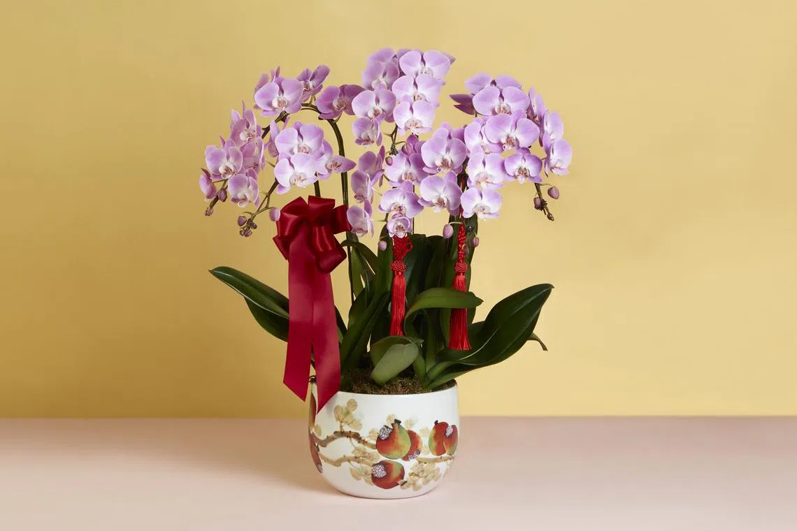 Phalaenopsis orchids add the ultimate touch of elegance to any home, with its perfectly poised petals in many colours to suit any decor. Make an instant impression with the bountiful blooms created by Raffles Floral Boutique. The lush phalaenopsis are presented in a traditional Chinese porcelain pot, a symbol of happiness, vitality and longevity.