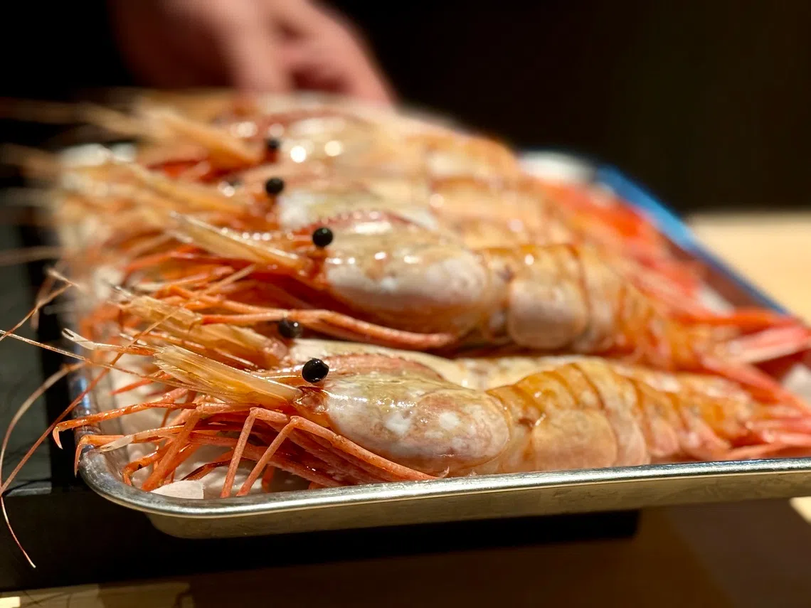 The fat botan ebi are shelled in front of you and served raw in a dashi jelly, adorned with uni and shavings of myoga for a fresh, gingery finish.