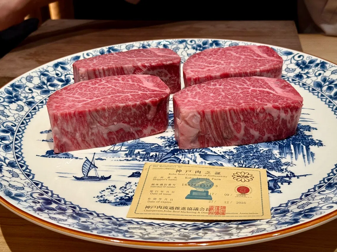 That means prime Kobe beef from extra-virgin, 100 per cent Tajima cattle aged 36 months at the time of slaughter – impressive credentials that you can actually taste, if you can stomach the price tag in the first place.
