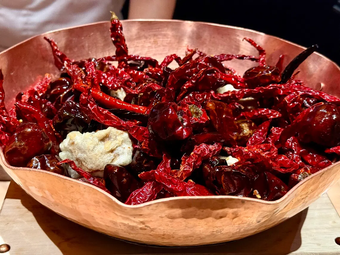 The personable chefs fry up a mean beef tempura – juicy tenderloin slices in a light battered crust that you dip in mild Japanese mustard. They also make a show of frying up a big pot of dried chillies and plonking in the tempura in hopes of transferring some heat. It doesn’t really work, but it’s fun to watch the chefs pretend that they’re in Sichuan.