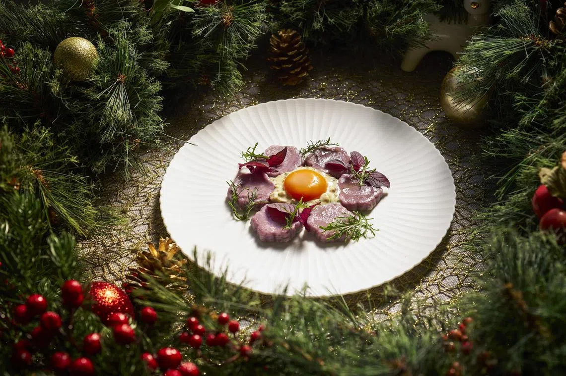 Presented on Dec 24, 25, 31 and Jan 1, the elegant Festive Lunch and Dinner menus are priced at S$188++ and S$268++, respectively, per guest, for a minimum of two persons. Wine pairing is also available.